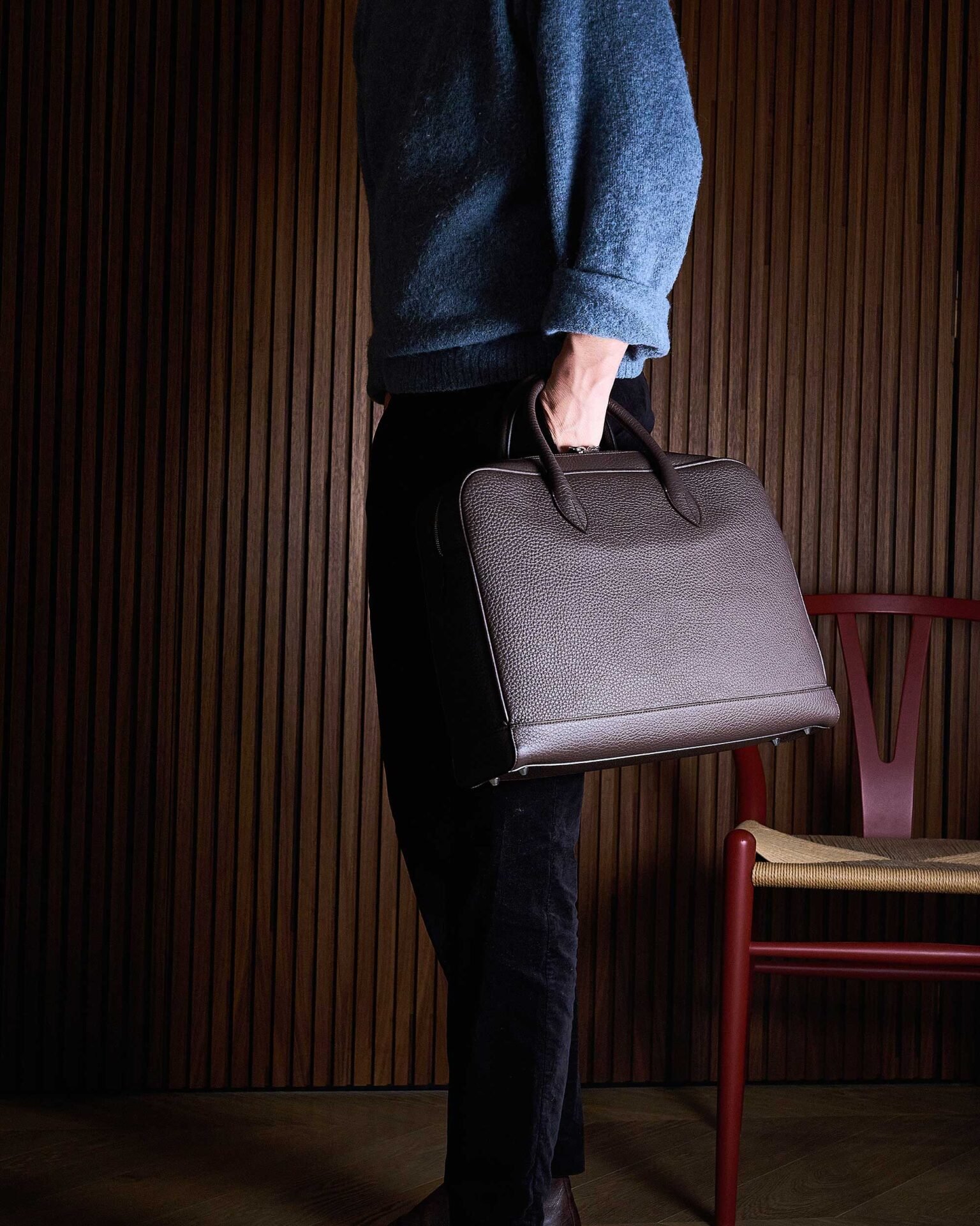 Die LAVORO Aktentasche von ACATE vereint eine reduzierte, elegante Formensprache mit höchster Funktionalität. Sie ist aus hochwertigem, weichem geprägtem Leder gefertigt, dessen natürliche Struktur und luxuriöse Haptik sofort ins Auge fallen. Das Design ist bewusst schlicht gehalten; einzig eine abnehmbare Quaste am Griffansatz setzt einen feinen Akzent, der den professionellen Charakter unterstreicht. Die Tasche lässt sich sicher aufrecht abstellen, was im Alltag und auf Reisen für zusätzliche Bequemlichkeit sorgt. Im Inneren ist sie durchdacht organisiert: Ein separates Fach für ein Laptop oder Tablet sowie ein Reißverschlussfach und drei weitere offene Innenfächer bieten Raum für Dokumente, Geräte und persönliche Gegenstände und machen die LAVORO zur idealen Begleiterin im beruflichen Kontext und darüber hinaus. Die Kombination aus italienischer Handwerkskunst, funktionaler Struktur und zurückhaltender Ästhetik macht diese Aktentasche zu einem stilvollen Ausdruck von Professionalität und zeitloser Eleganz.