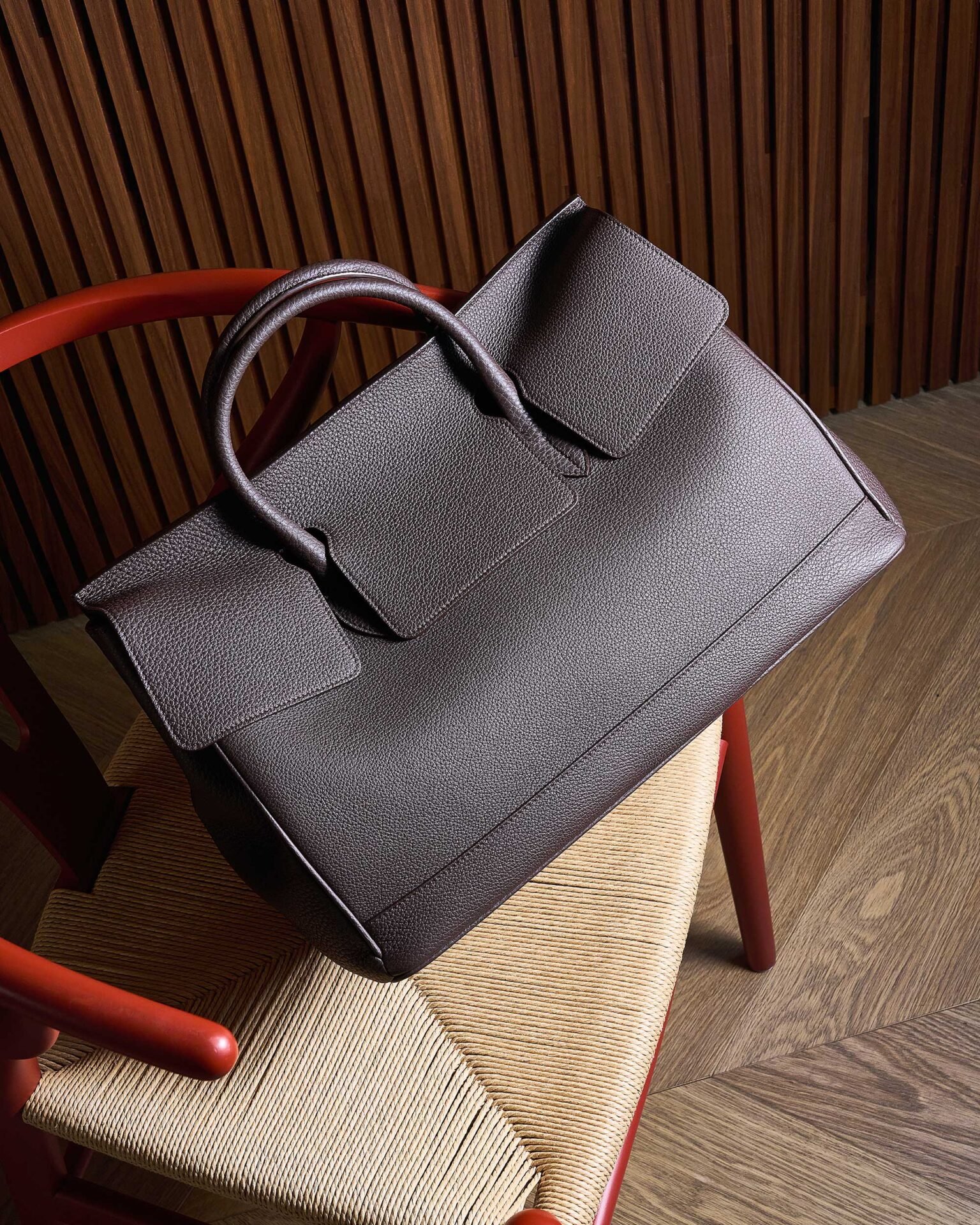 Das Design folgt konsequent dem Prinzip „Form folgt Funktion“ und verbindet reduzierte Klarheit mit zeitloser Eleganz. Jede Tasche ist so gestaltet, dass sie über Trends hinaus Bestand hat. Die Marke vereint die ruhige Präzision japanischer Stilästhetik mit der Exzellenz italienischer Handwerkskunst und gestalterischer Sensibilität.
