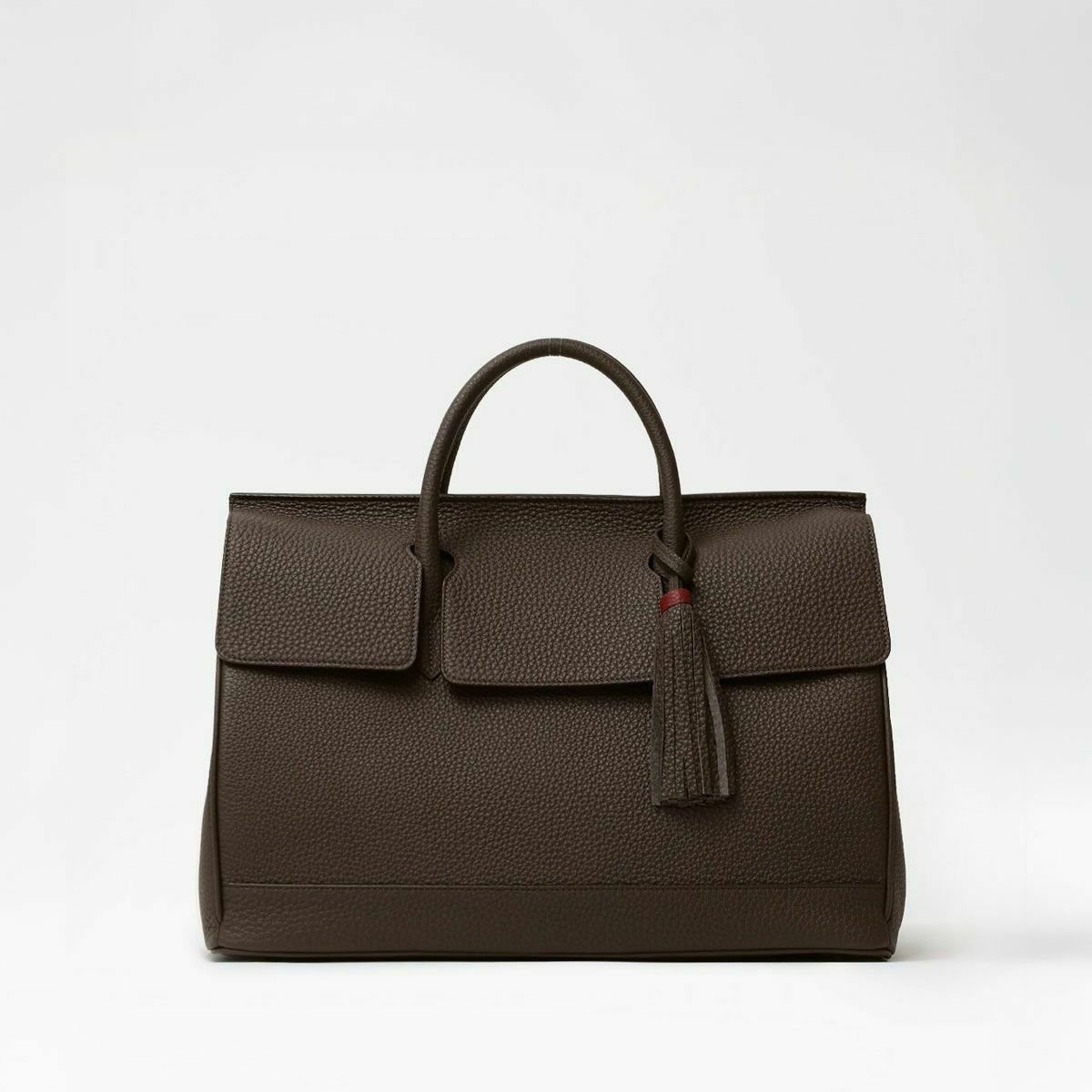 Es zeichnet sich durch sein schlichtes, aber luxuriöses Design aus, das durch klare Linien und eine sorgfältige Verarbeitung besticht. Ein besonderes Highlight ist das markante Quastenband, das der Tasche einen Hauch von Individualität und Raffinesse verleiht. Die Tasche bietet ausreichend Stauraum für alle wichtigen Gegenstände des Alltags, ohne dabei sperrig oder unhandlich zu wirken. Innen finden Sie verschiedene Fächer und Taschen, die eine geordnete Aufbewahrung von Dokumenten, Geldbörse, Smartphone und anderen Utensilien ermöglichen. Ein robustes Reißverschlusssystem sorgt dafür, dass alle Gegenstände sicher verwahrt sind.