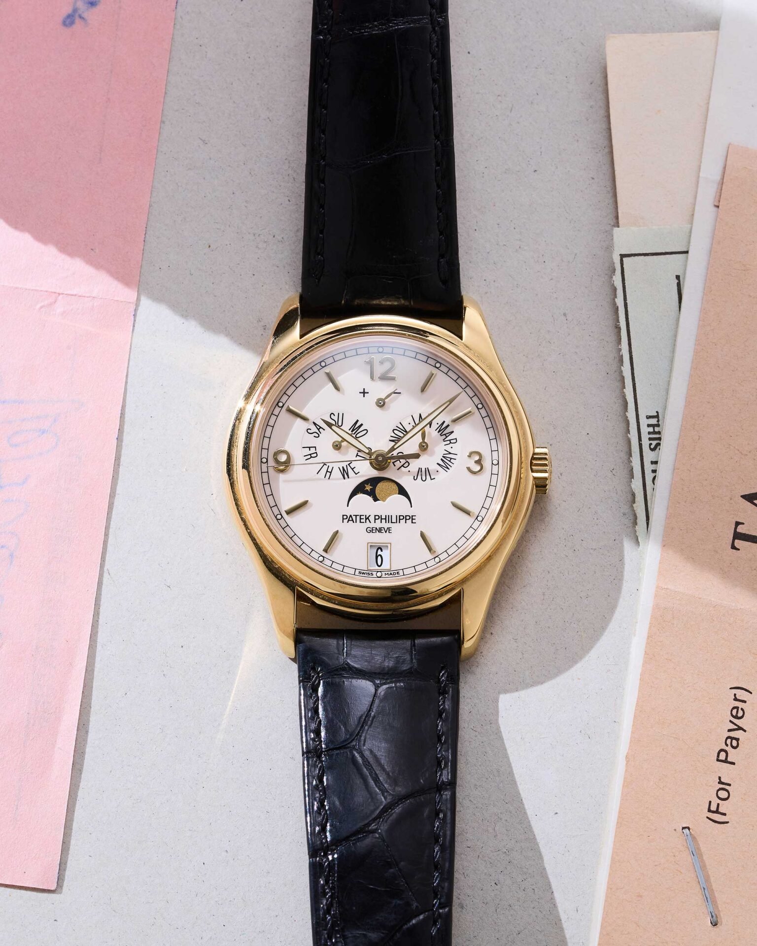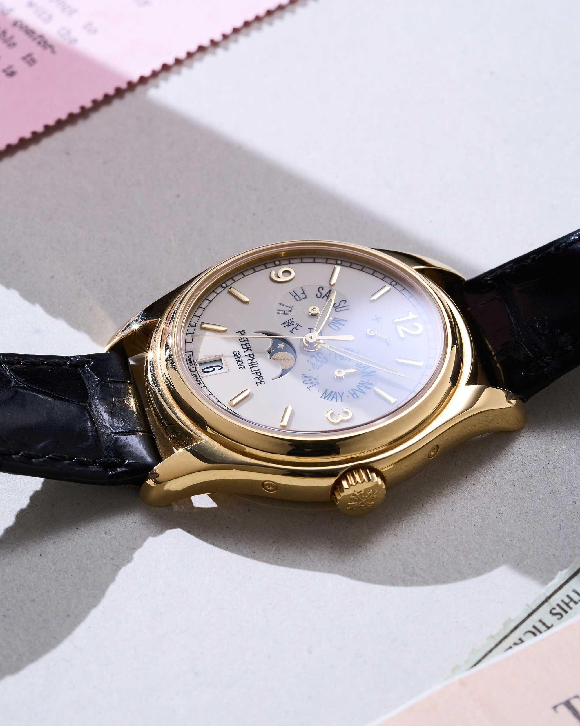 Die Referenz 5146 ist ein zentraler Bestandteil der Patek-Philippe-Jahreskalenderlinie und gilt als moderne Ikone der Marke. Der von Patek Philippe 1996 eingeführte Annual Calendar stellt eine der bedeutendsten Komplikationen der modernen Uhrmacherei dar und verbindet technische Raffinesse mit außergewöhnlicher Alltagstauglichkeit. In Gelbgold verkörpert dieses Modell klassische Patek-Philippe-Ästhetik in ihrer reinsten Form.