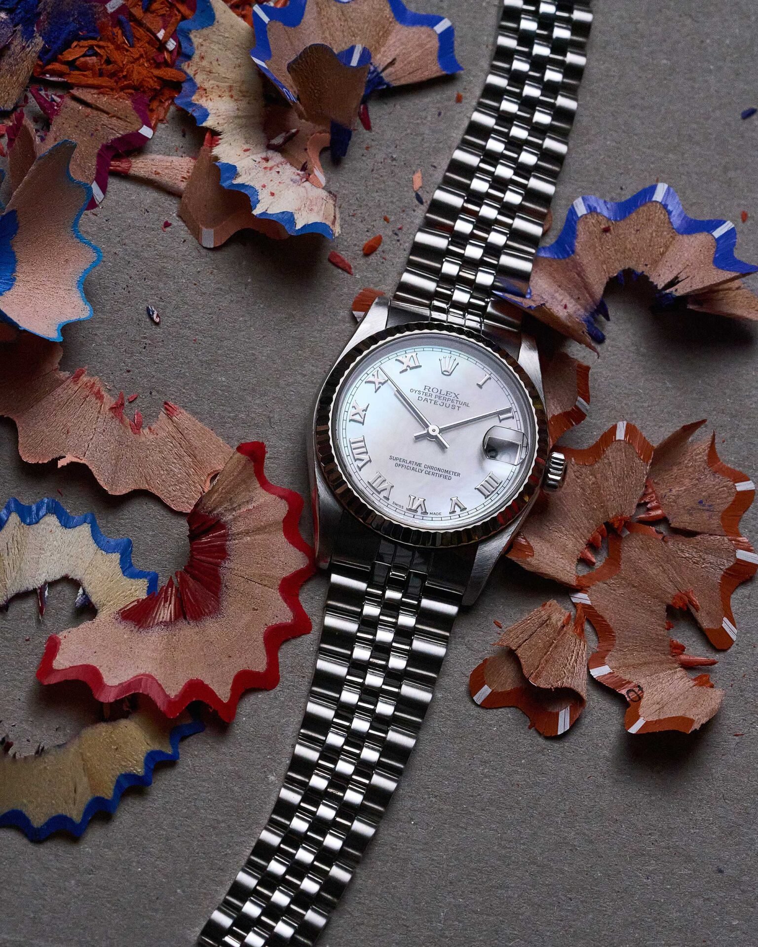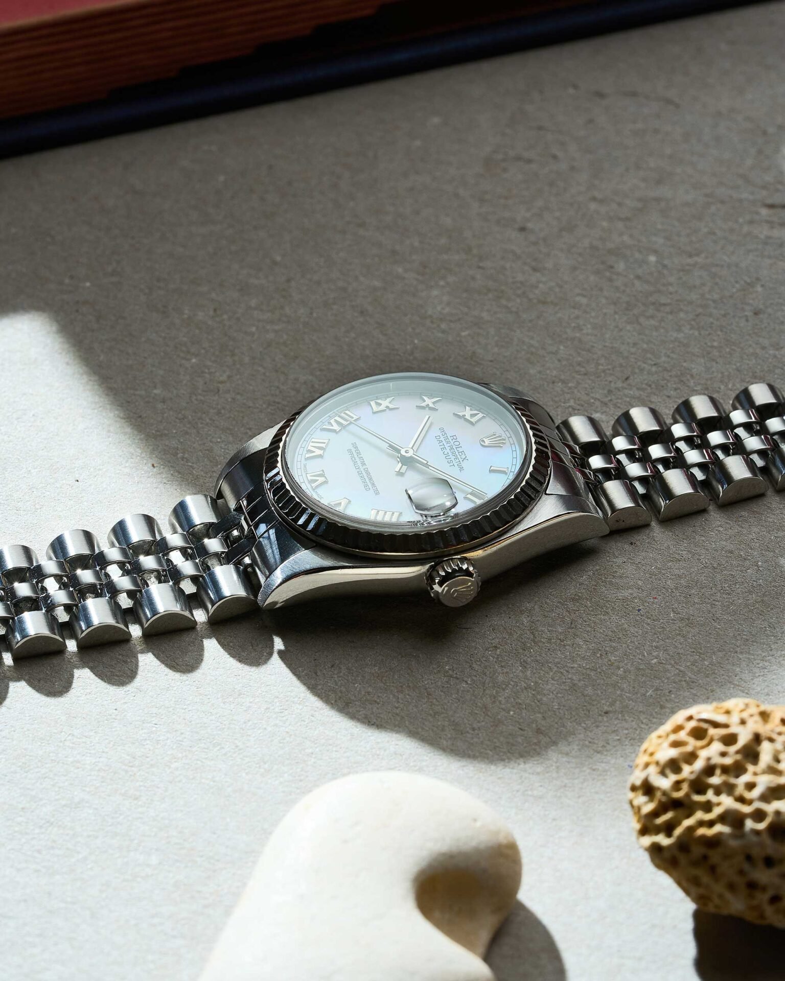 Die Referenz 78274 gehört zur Date-31-mm-Reihe und positioniert sich zwischen klassischen Damen- und Unisex-Modellen. Die Kombination aus Weißgoldlünette und Perlmutt-Zifferblatt gehört zu den hochwertigeren Konfigurationen dieser Baureihe und ist innerhalb der Date-Modelle vergleichsweise seltener anzutreffen.