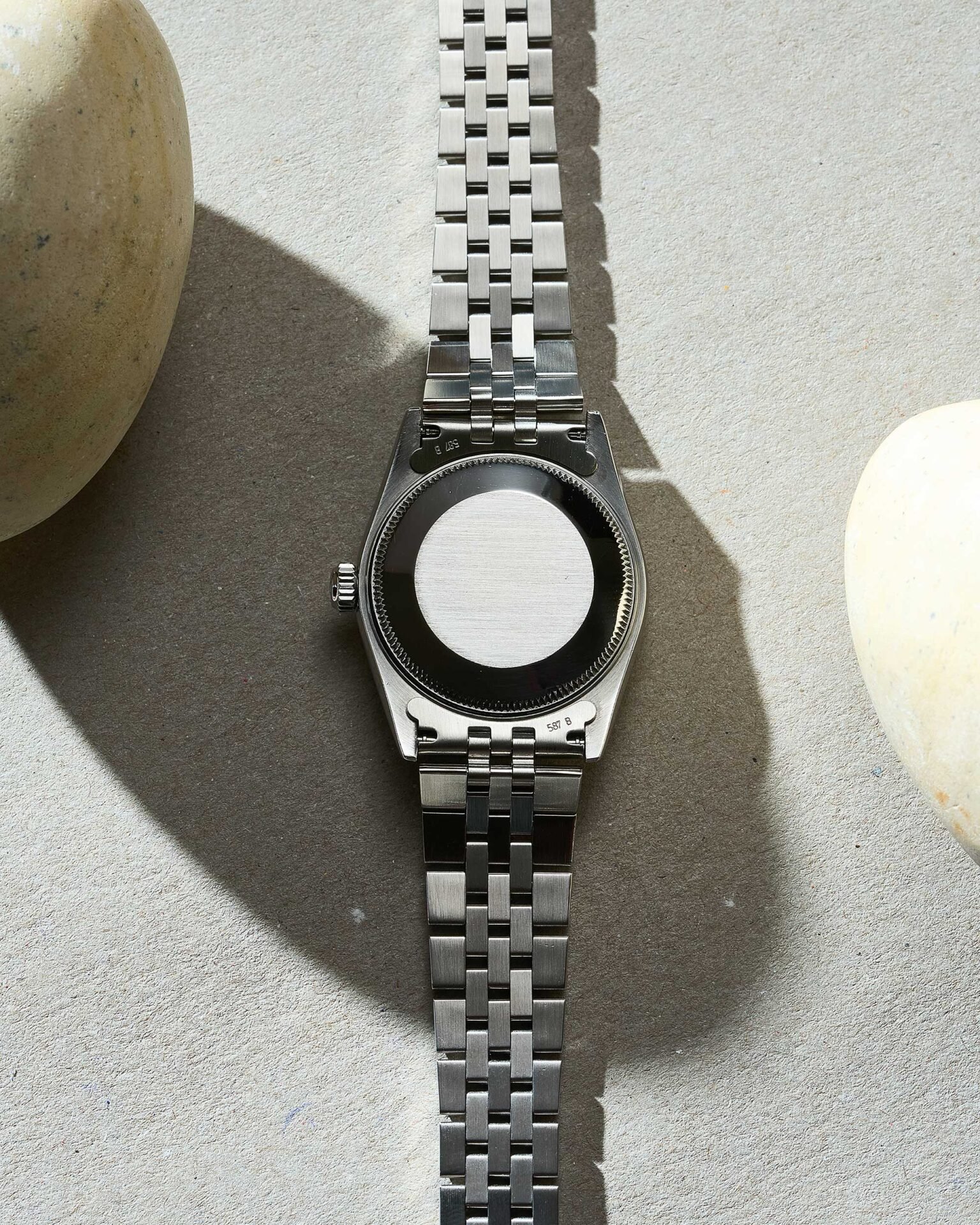 Im Inneren arbeitet ein automatisches Rolex-Manufakturkaliber der Date-Serie mit zuverlässiger Gangstabilität und solider Alltagsperformance.