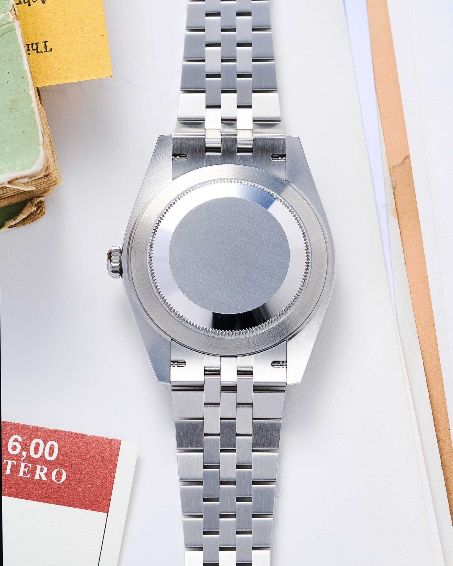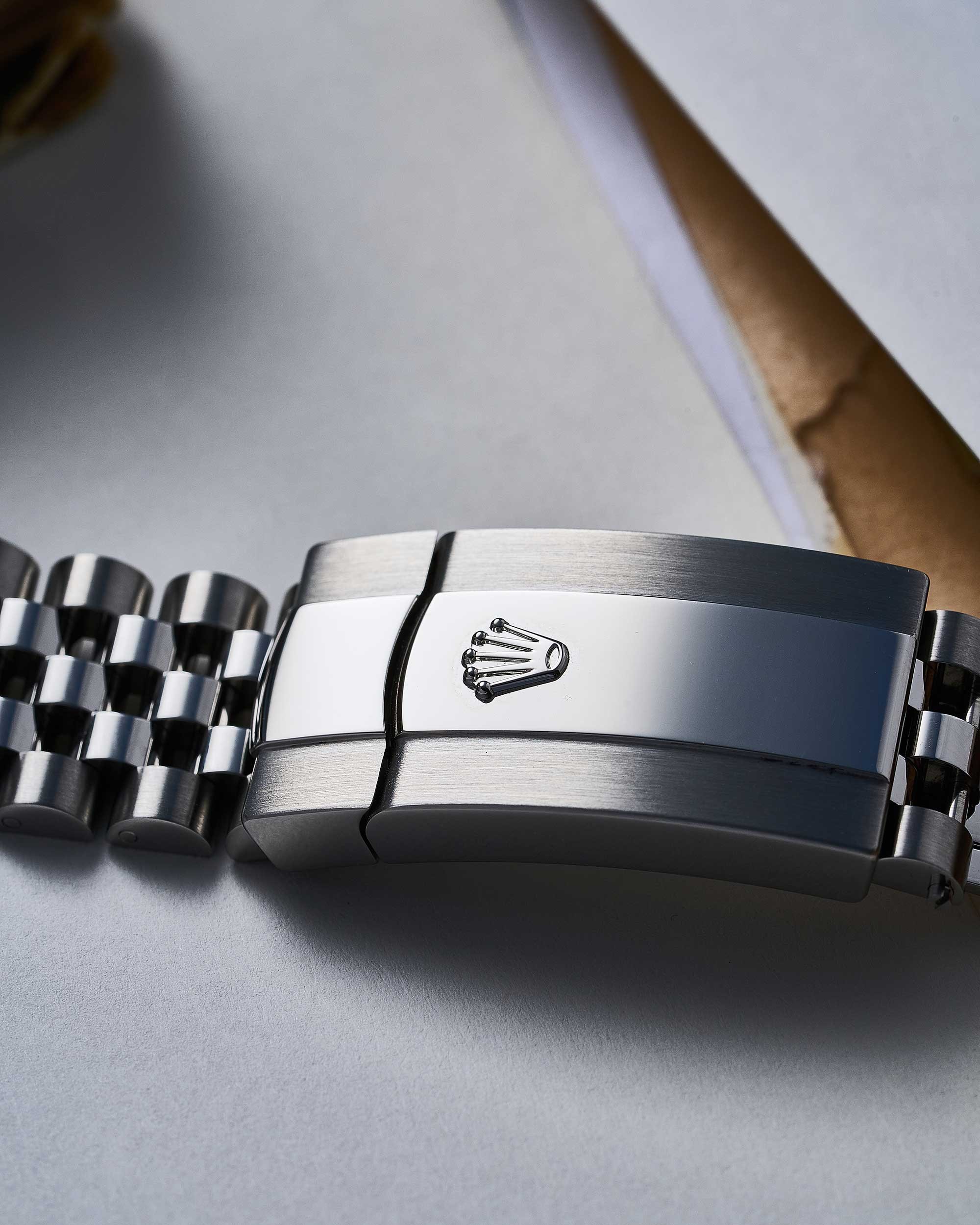 Ausgestattet ist die Uhr mit dem Jubilee-Band aus Edelstahl, das für hohen Tragekomfort und die typische, elegante Datejust-Ästhetik steht. Die Oysterclasp-Schließe gewährleistet einen sicheren und bequemen Sitz am Handgelenk.