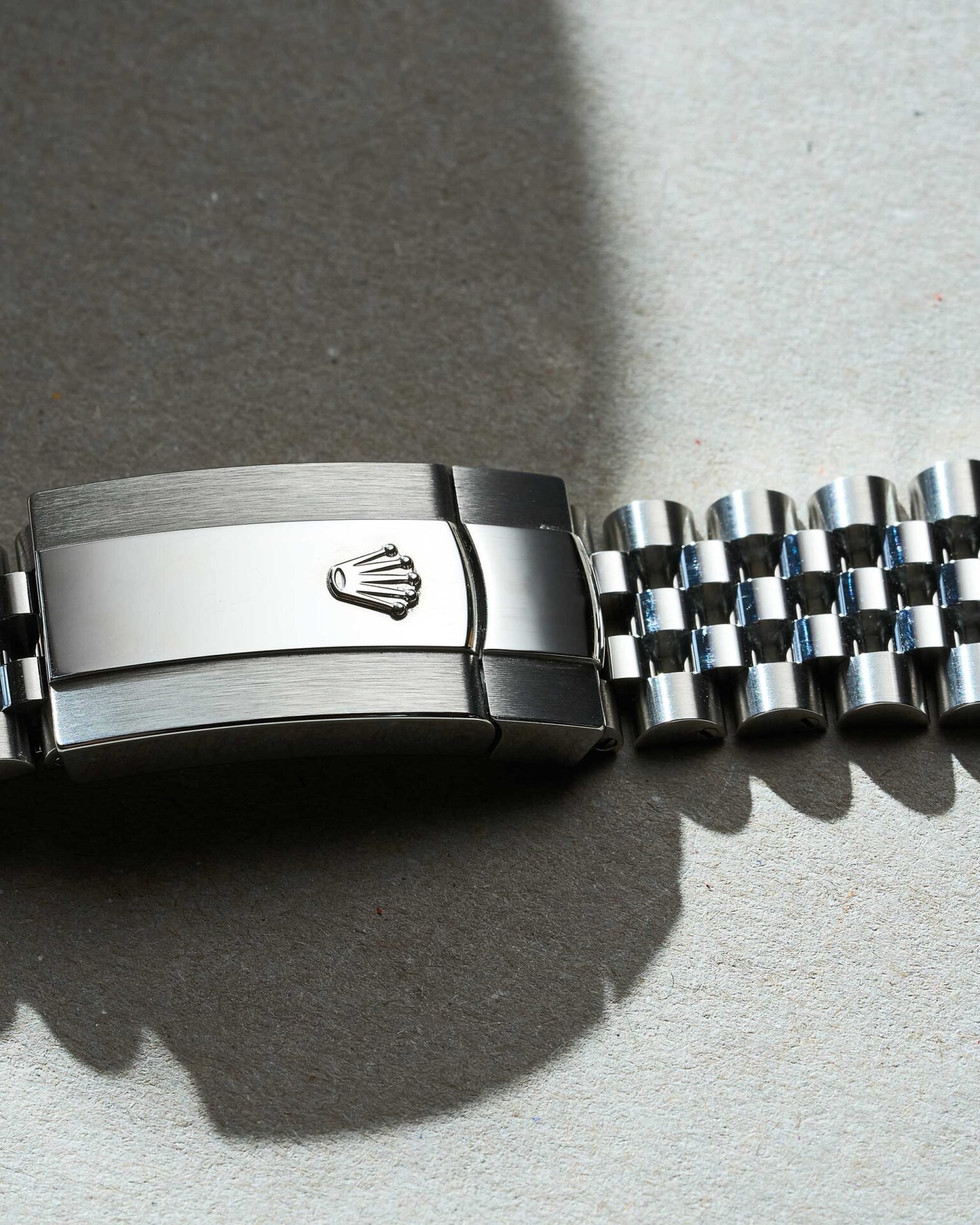 Die Uhr ist mit einem fünfreihigen Jubilee-Band aus Edelstahl ausgestattet. Die Faltschließe sorgt für sicheren Halt und hohen Tragekomfort im Alltag.