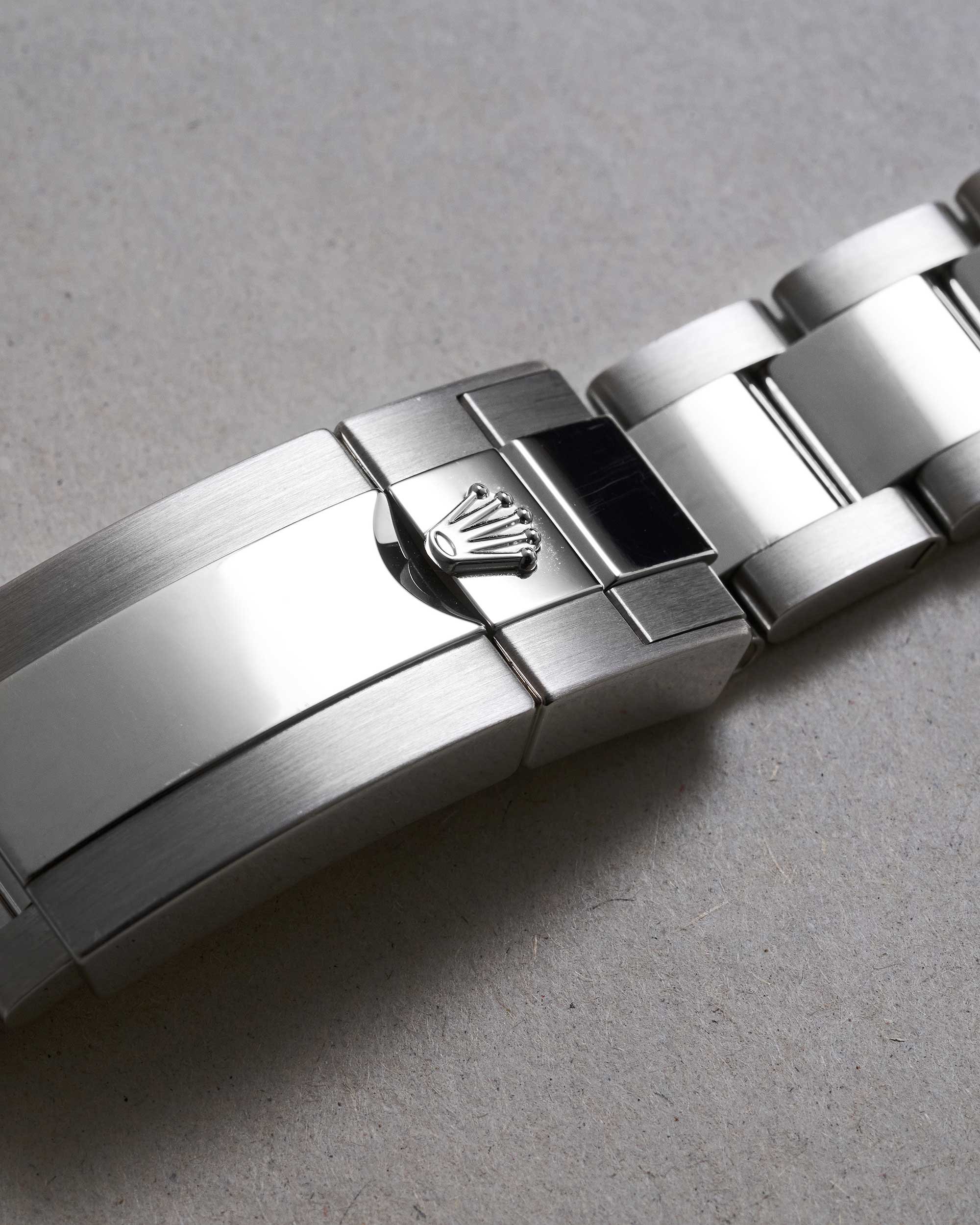 Das massive Oyster-Band aus Platin sorgt für höchsten Tragekomfort und ist mit der bewährten Oysterlock-Sicherheitsfaltschließe ausgestattet. Diese verhindert ein unbeabsichtigtes Öffnen und garantiert sicheren Halt. Zusätzlich verfügt die Schließe über das Easylink-Verlängerungssystem, das eine Anpassung der Bandlänge um 5 mm ermöglicht, um optimalen Komfort zu gewährleisten.