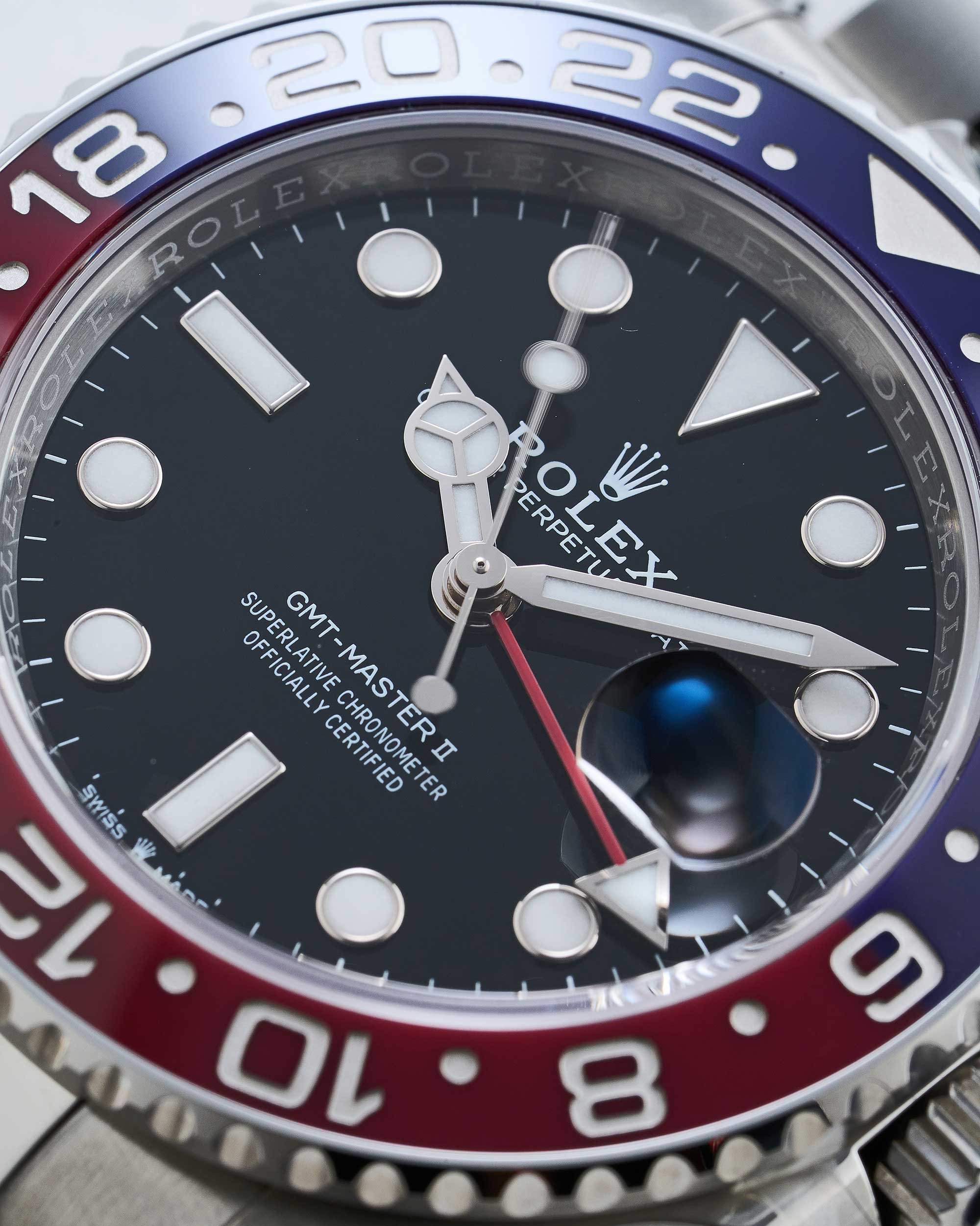 Die Referenz 126710BLRO markiert die Rückkehr der klassischen Pepsi-Farben in Keramik innerhalb der Edelstahl-GMT-Master-II-Linie. Sie verbindet ikonisches Design mit moderner Uhrentechnik und zählt heute zu den begehrtesten Sportmodellen von Rolex – sowohl für Vielreisende als auch für Sammler.