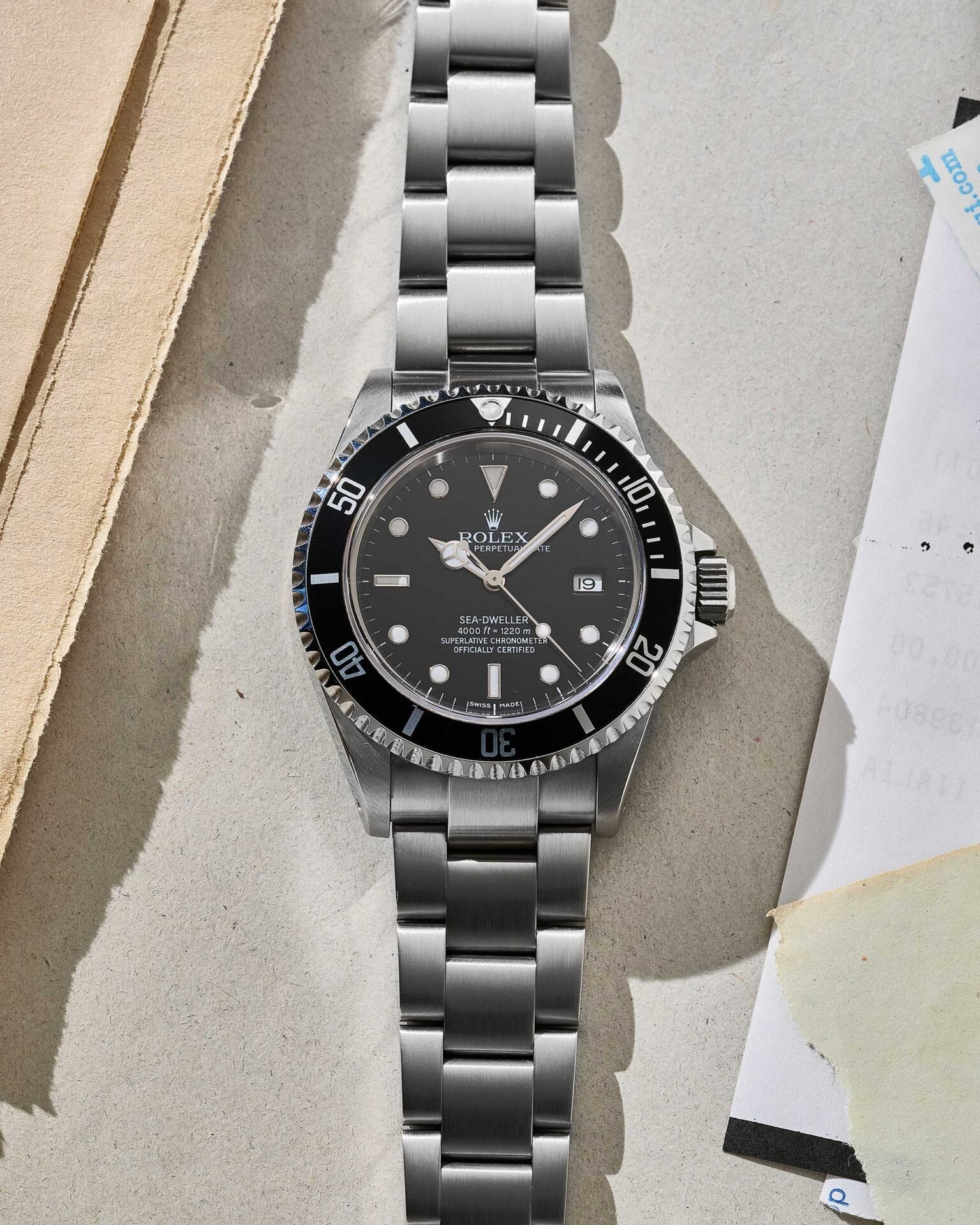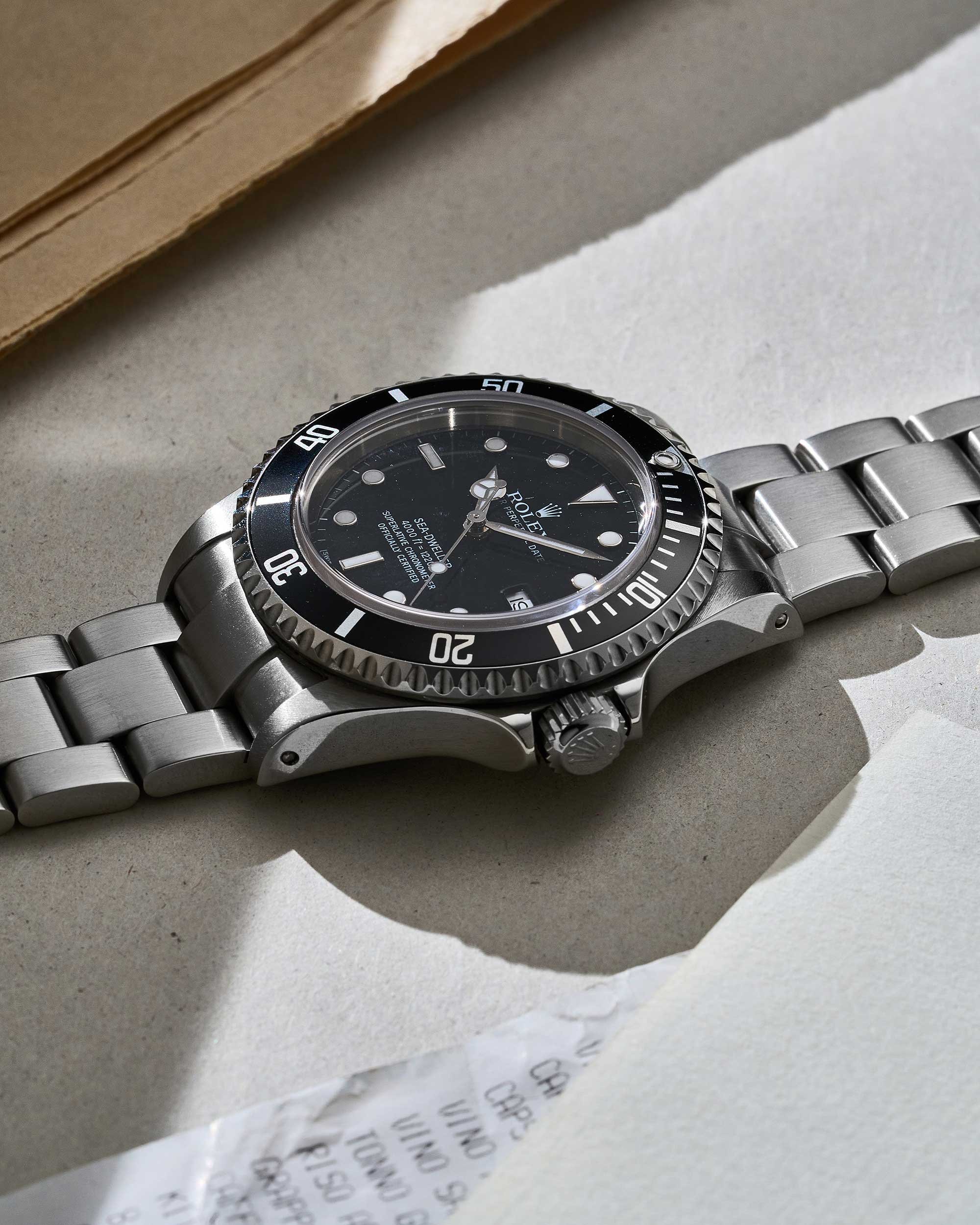 Rolex Sea-Dweller mit Oyster-Band, Heliumventil und schwarzer Lünette, K-Serie aus 2001