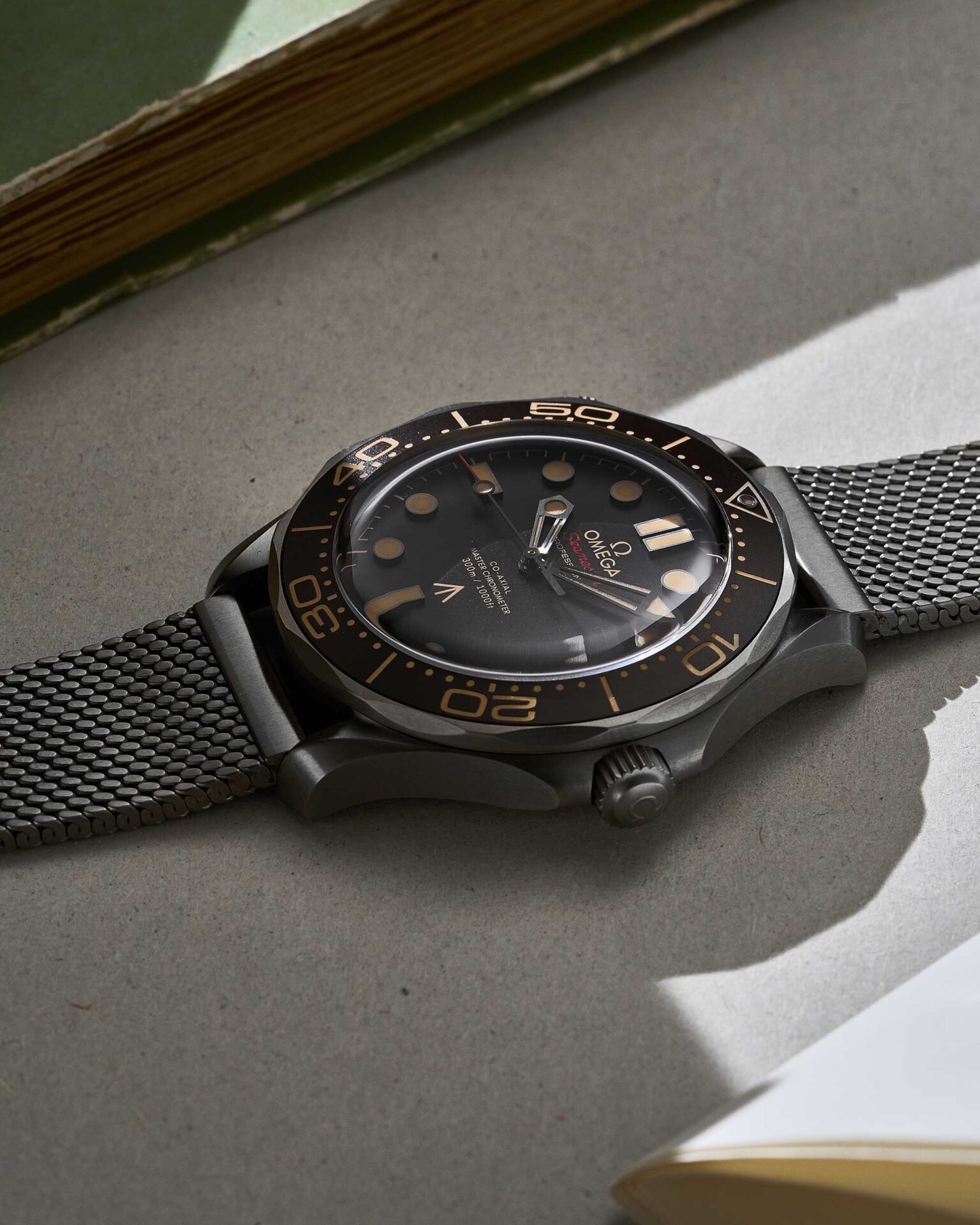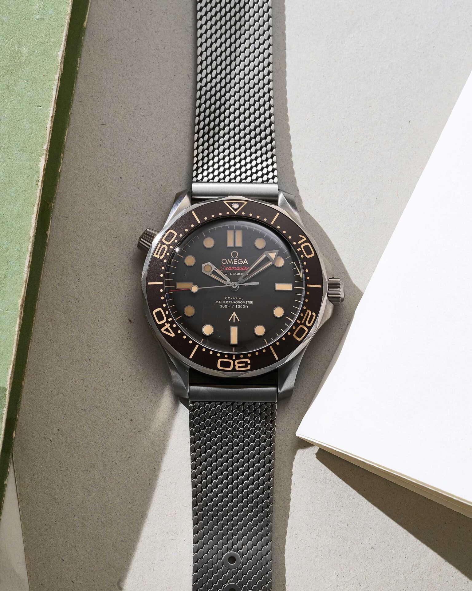 OMEGA Seamaster Diver 300 M James Bond in Titan „No Time To Die“ mit schwarzem Zifferblatt und Titan Armband, Box & Papiere aus 2021