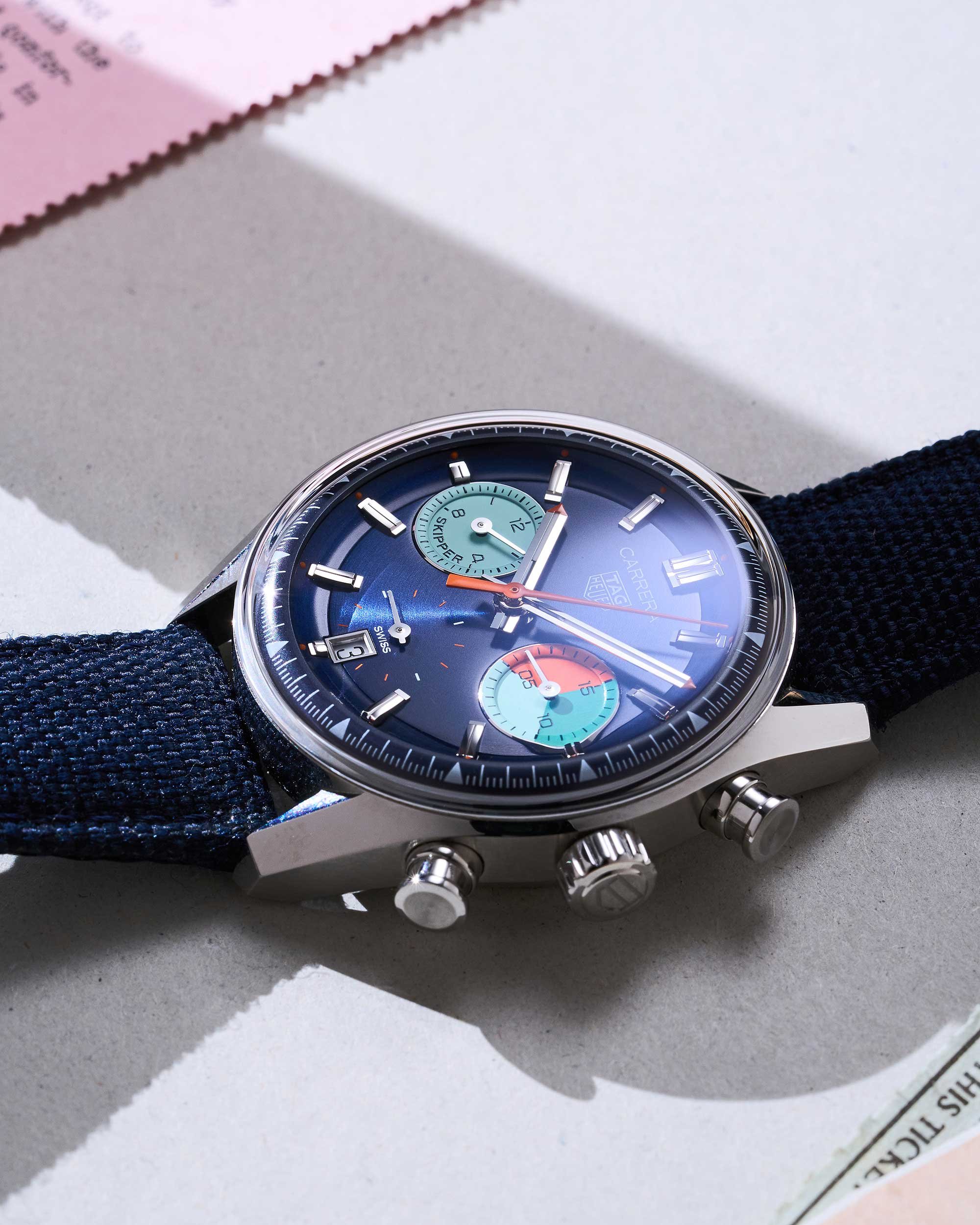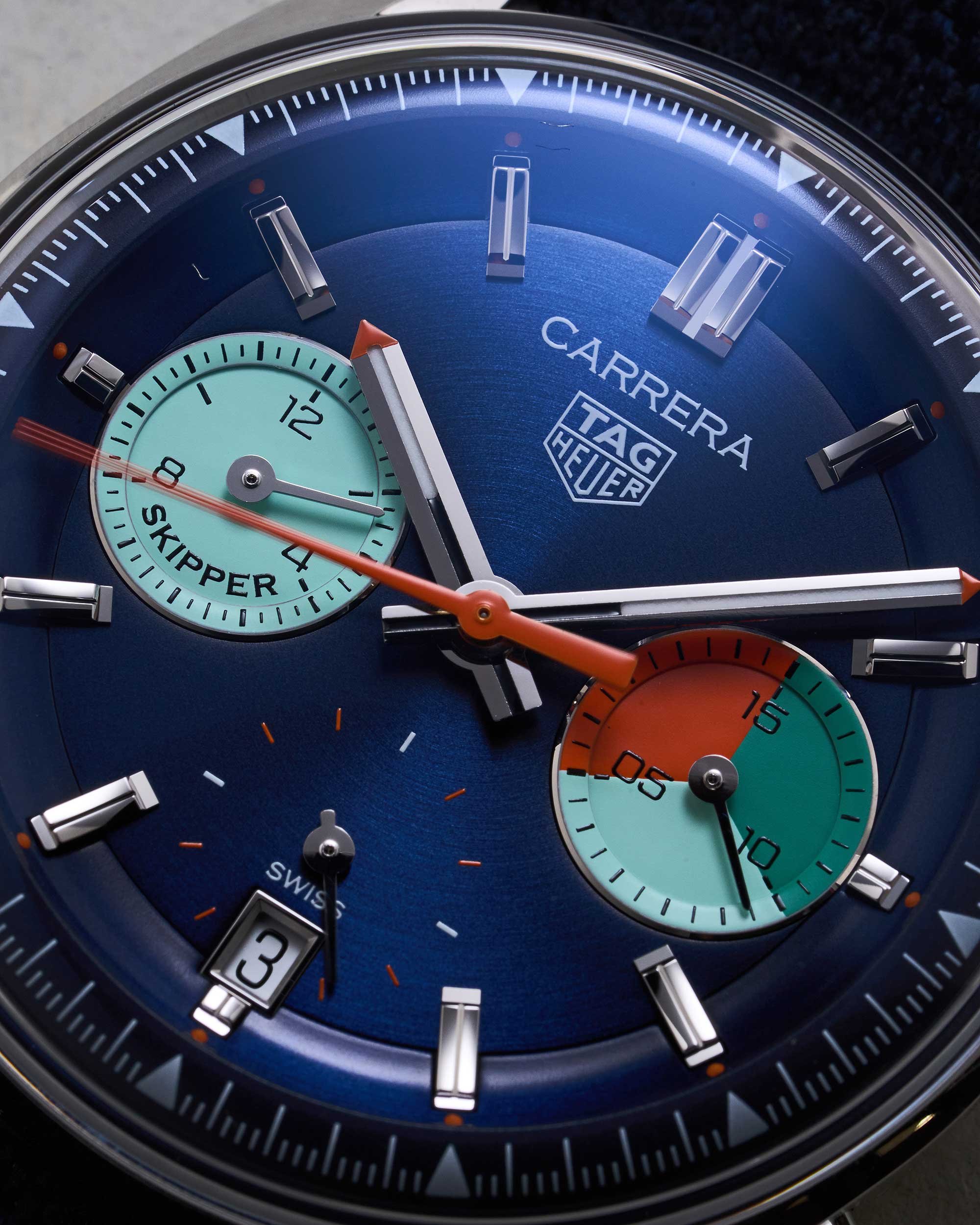 Der Carrera Skipper knüpft an die legendären TAG Heuer Skipper-Chronographen der 1960er-Jahre an, die speziell für den Segelsport entwickelt wurden. In der modernen Carrera-Ausführung verbindet dieses Modell historische Designelemente mit zeitgemäßer Technik und gilt als besonders charakterstarke Variante innerhalb der Carrera-Familie.